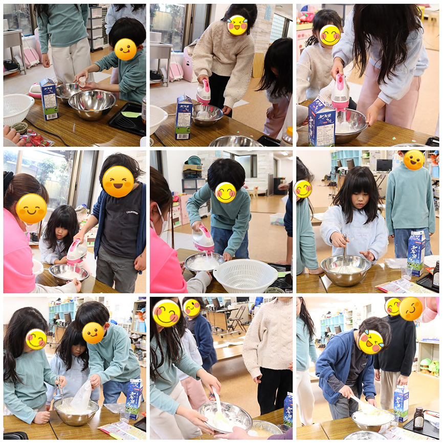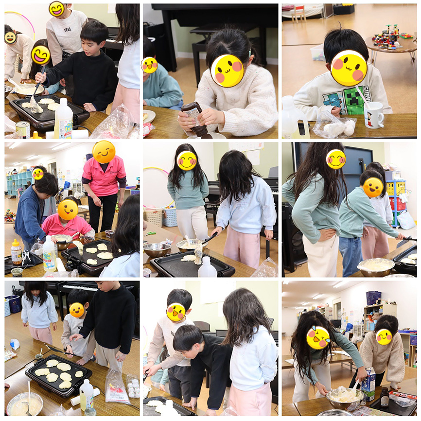 学童保育キッズスクエアでは、子どもたちが安心して参加できる環境のもと、みんなで協力しながらオリジナルホットケーキづくりを行いました。
