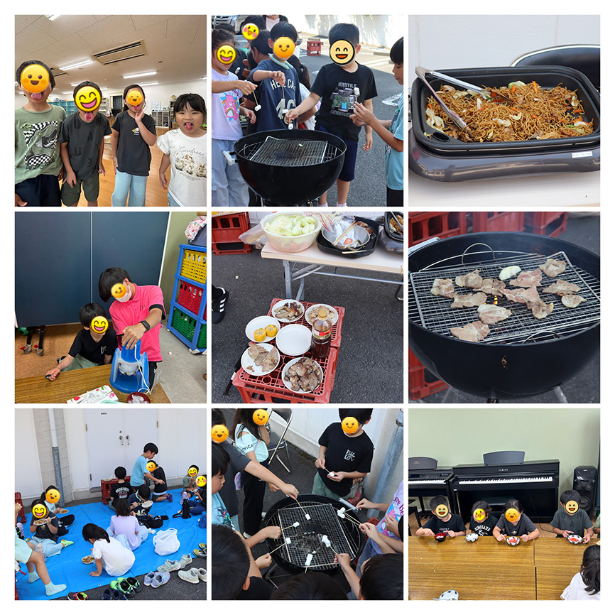 キッズスクエアのみんなで、施設の敷地内にてバーベキュー&かき氷を楽しみました!