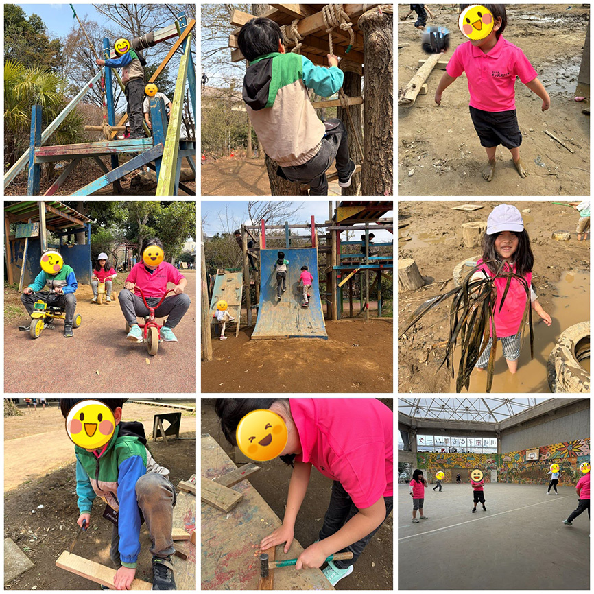 普段の室内学習やレッスンで見せる真剣な表情とはまた異なり、自然の中で「次はこれをやってみたい」と自ら考え、生き生きと行動する子どもたちのたくましさを肌で感じることができた一日となりました。真っ黒になった服は、全力で遊び切った何よりの証です。